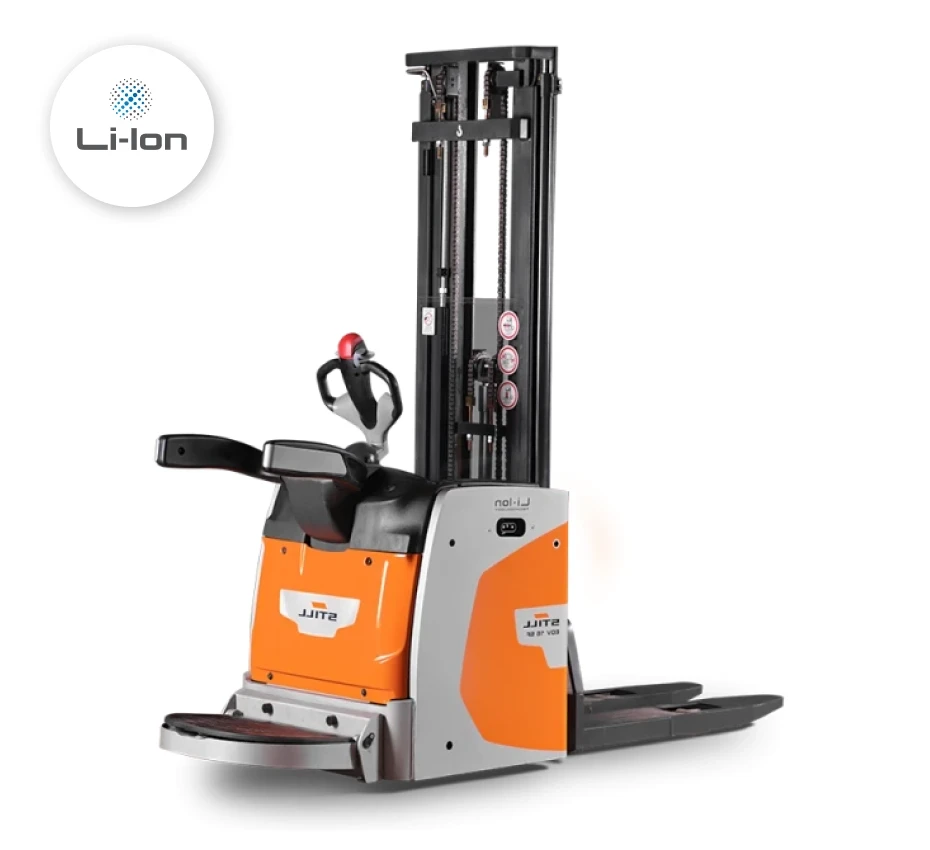 Com direção elétrica, braços laterais e conceito de operador embarcado, a EGV 16 SF garante alta movimentação de mercadorias, rapidez e operação segura, incluindo redução automática de velocidade com garfos elevados. Sua bateria Li-Íon assegura alta disponibilidade, e o acesso fácil para cargas de oportunidade mantém a empilhadeira sempre pronta para uso.